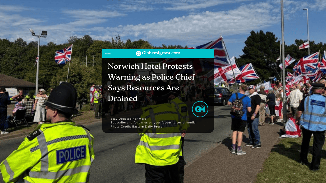 Norwich hotel protests have become a defining public order challenge for Norfolk, quietly reshaping how policing resources are deployed across the city. At the centre of this situation is the Brook Hotel in Bowthorpe, Norwich, where migrants are currently being accommodated. Since the summer, this location has drawn weekly demonstrations, sometimes involving hundreds of people, and the cumulative impact is now being felt far beyond the hotel’s immediate surroundings.